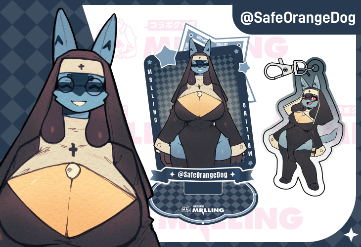 A stunninganime acrylic stand featuring a one-of-a-kind Lucario OC in a striking nun habit.